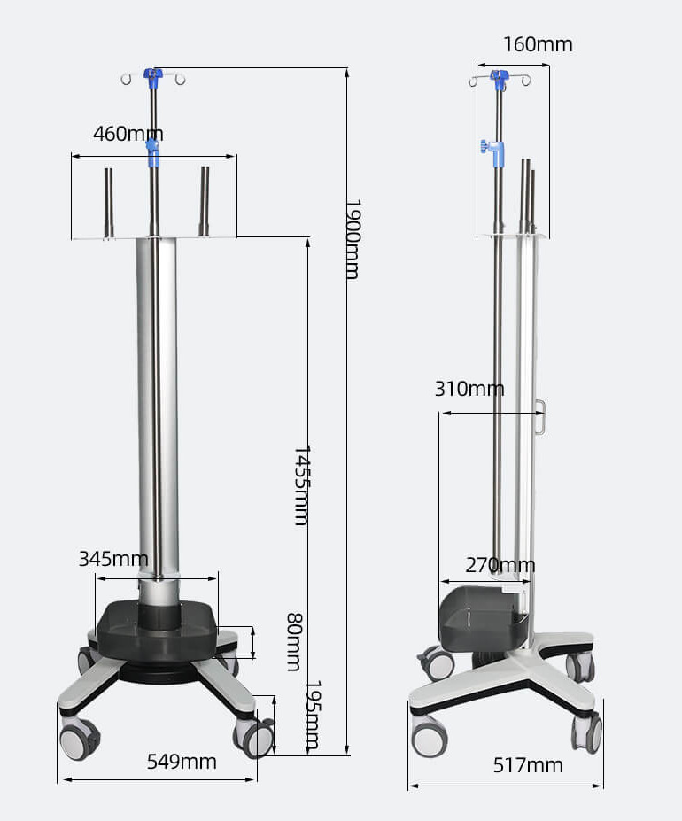 收纳筐、绕线器、输液泵固定夹、注射泵固定夹、输液杆。
